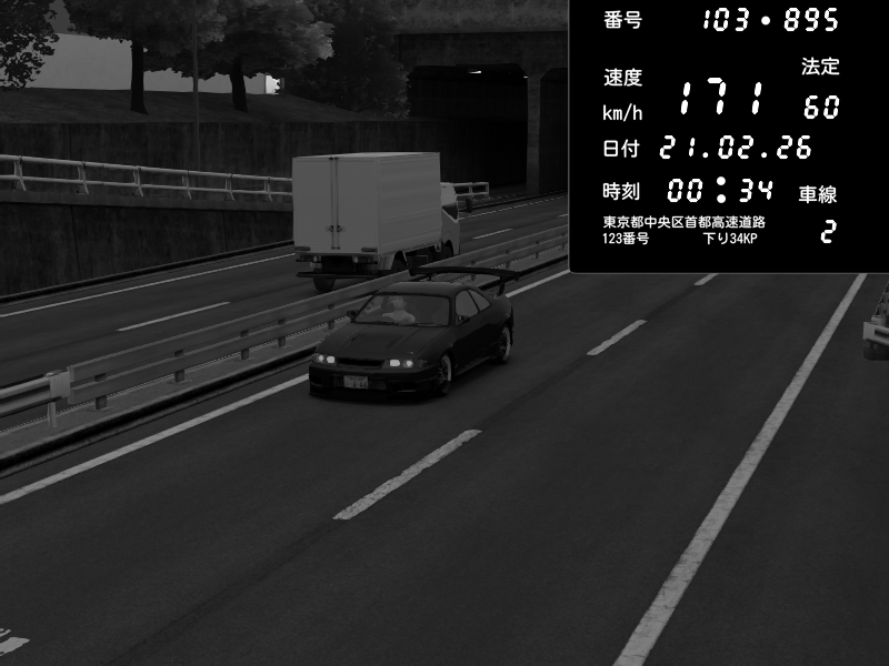 | 2026/02/20 01:11 | C1内回り 銀座 | 210 / 60 km/h | yo_teej | Nissan Skyline GTR R33 (S3 - Wangan) | CAPTURE |