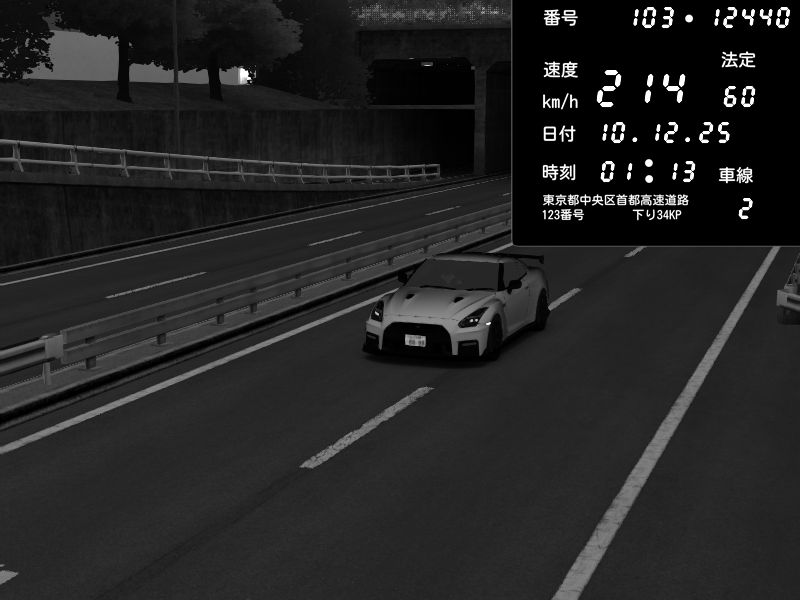 | 2025/12/10 01:13 | C1内回り 銀座 | 214 / 60 km/h | kenitilou | Nissan GT-R NISMO 2017 | CAPTURE |