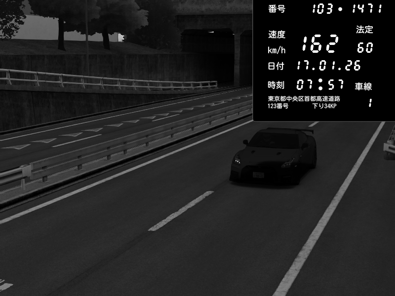 | 2026/01/17 00:01 | C1内回り 銀座 | 212 / 60 km/h | 아이가타고있어요 | Nissan GT-R NISMO 2017 | CAPTURE |