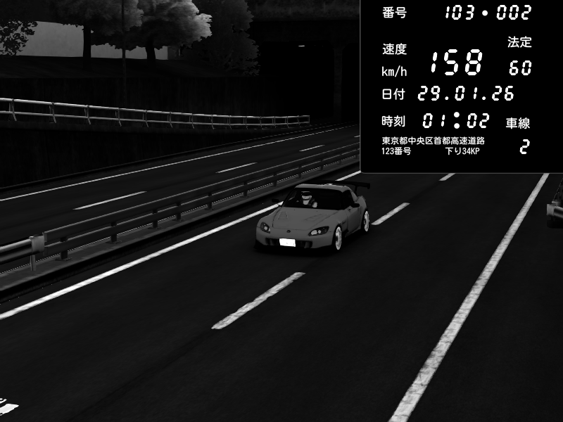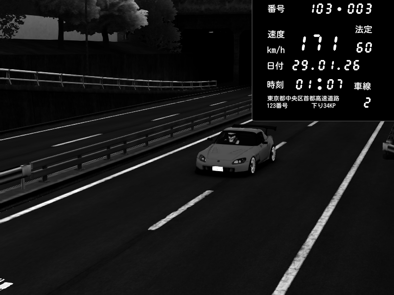 | 2026/01/29 00:36 | C1内回り 銀座 | 178 / 60 km/h | 木曜が一番疲れている | Honda S2000 (AP2 - Legendary) | CAPTURE |