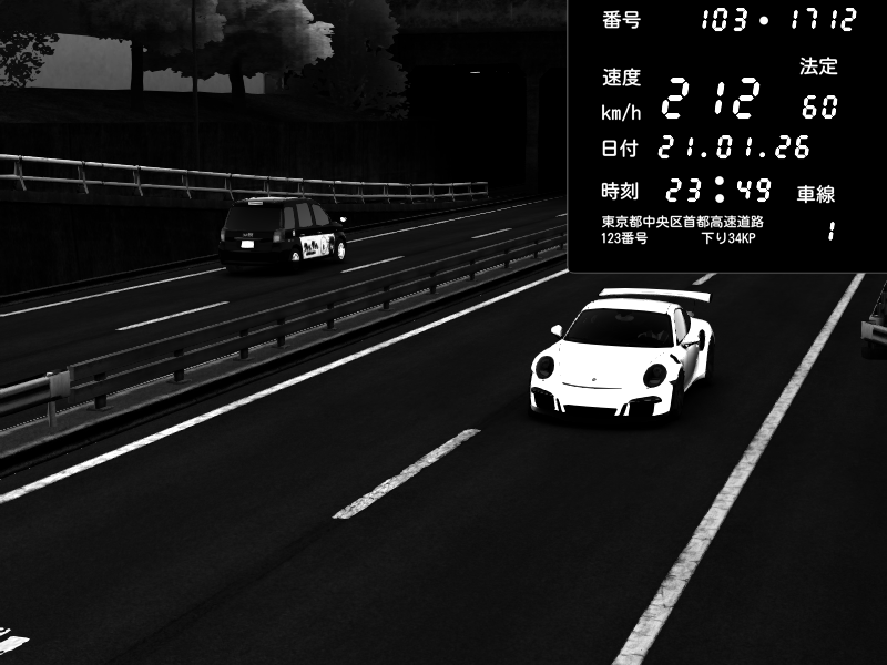 | 2026/01/21 23:49 | C1内回り 銀座 | 212 / 60 km/h | skr | Porsche 911 GT3 RS | CAPTURE |
