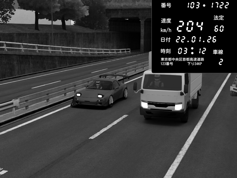 | 2026/01/21 17:55 | C1内回り 銀座 | 224 / 60 km/h | YEWEON | Mazda RX-7 FD3S RE Amemiya | CAPTURE |