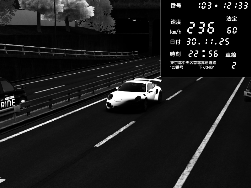 | 2025/11/30 22:56 | C1内回り 銀座 | 236 / 60 km/h | 🔰Shiero | Porsche 911 GT3 RS | CAPTURE |