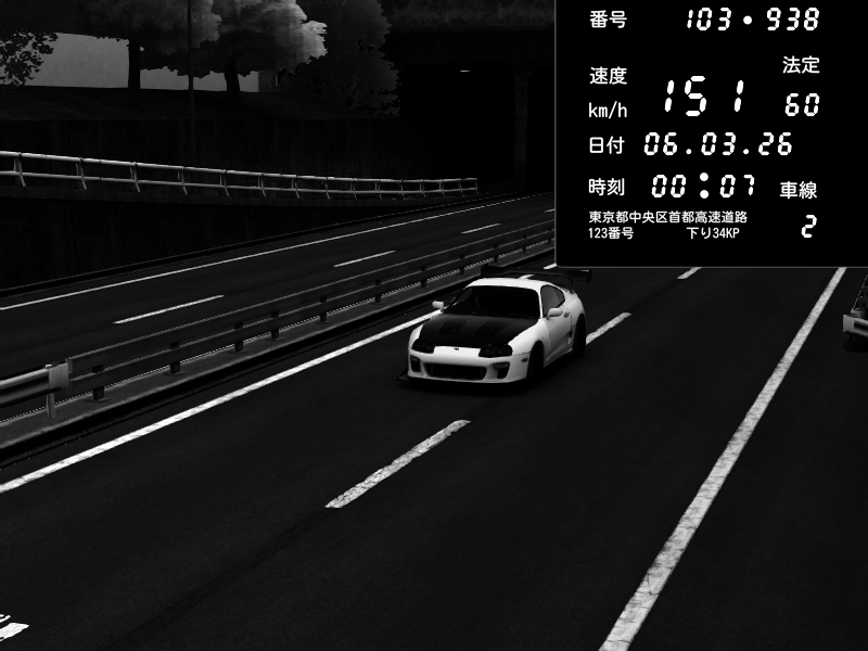 | 2026/03/06 00:07 | C1内回り 銀座 | 151 / 60 km/h | Player | Toyota Supra MKIV Time Attack | CAPTURE |