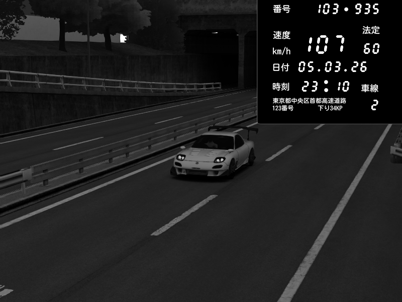 | 2026/03/05 23:10 | C1内回り 銀座 | 107 / 60 km/h | Thotimus Prime | Mazda RX-7 FD3S RE Amemiya | CAPTURE |