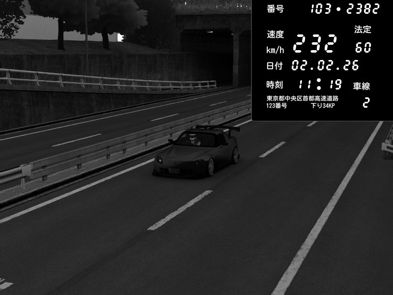 | 2026/02/02 18:19 | C1内回り 銀座 | 206 / 60 km/h | G29(LUT)&32TV60Hz3画面老人晩酌中 | Honda S2000 Turbo GT1 Amuse (AP1) | CAPTURE |