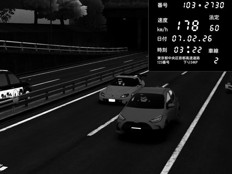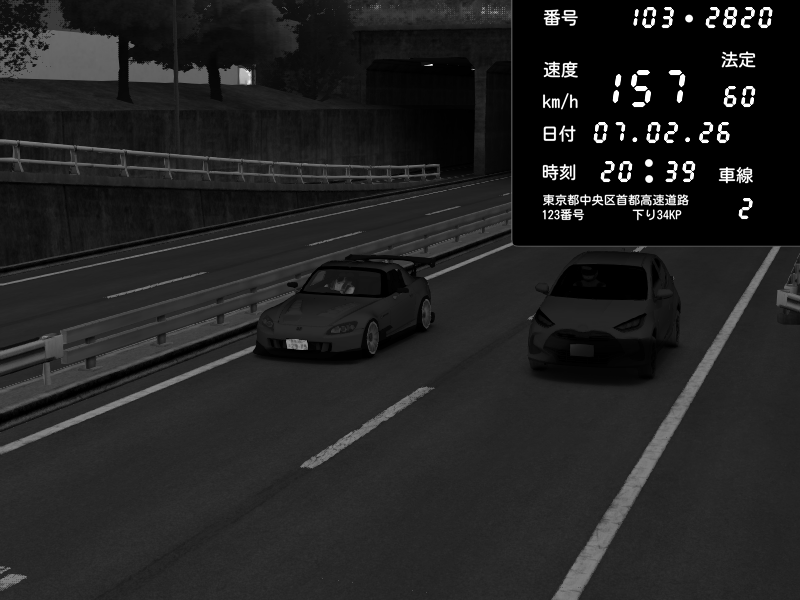 | 2026/02/07 20:39 | C1内回り 銀座 | 157 / 60 km/h | ゆきのん🐭 | Honda S2000 (AP2 - Legendary) | CAPTURE |