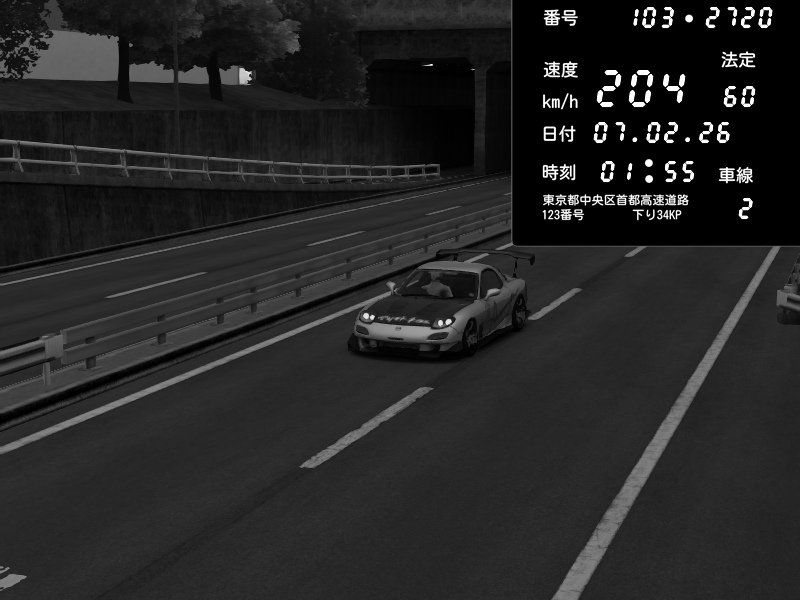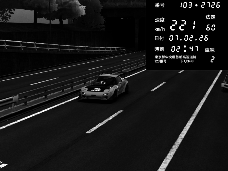 | 2026/02/07 19:27 | C1内回り 銀座 | 200 / 60 km/h | ひきちゃん | Mazda RX-7 FD3S RE Amemiya | CAPTURE |