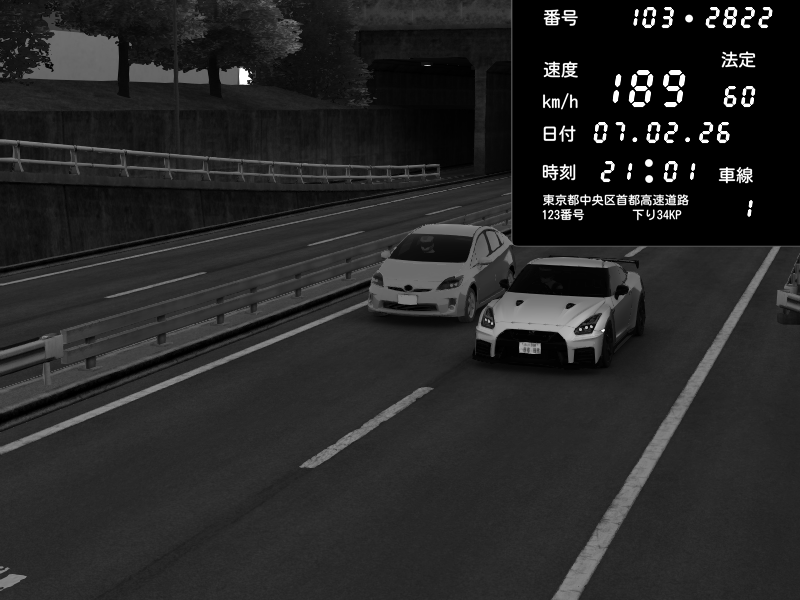 | 2026/02/07 21:01 | C1内回り 銀座 | 189 / 60 km/h | Dovan00724 | Nissan GT-R NISMO 2017 | CAPTURE |