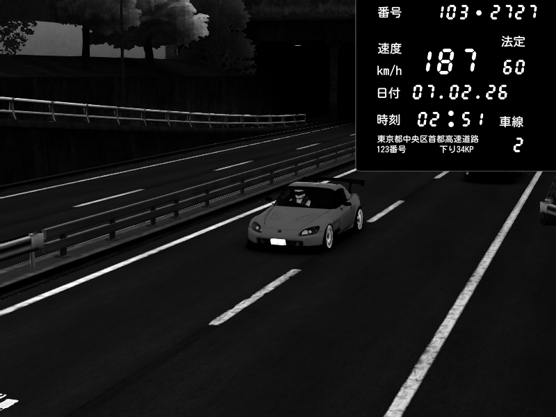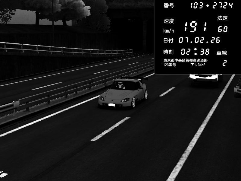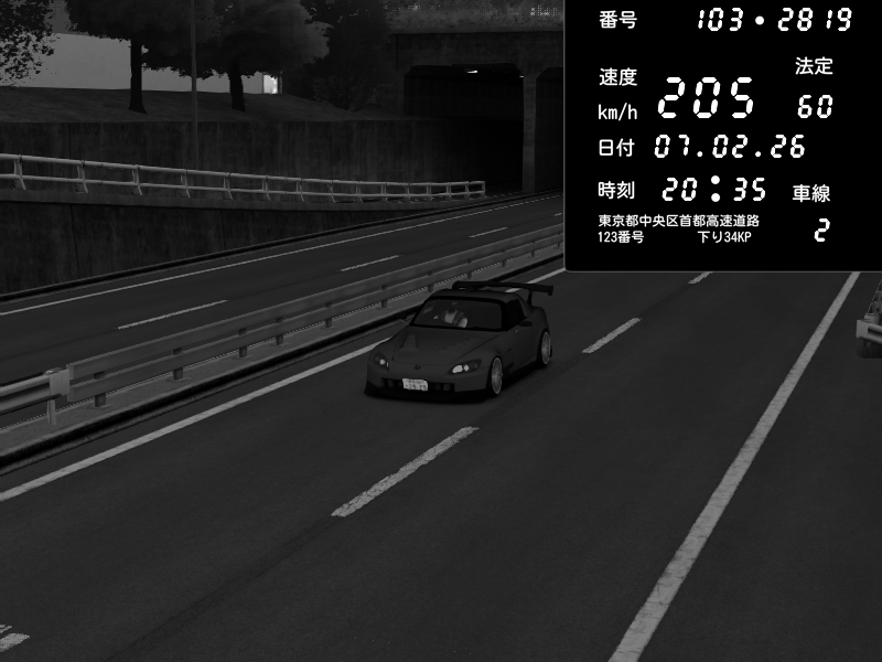 | 2026/02/07 18:05 | C1内回り 銀座 | 210 / 60 km/h | kabo_25 | Honda S2000 (AP2 - Legendary) | CAPTURE |