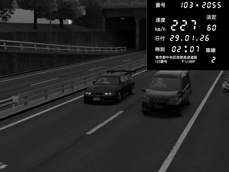 | 2026/01/29 02:07 | C1内回り 銀座 | 227 / 60 km/h | gc8 lover | Nissan Skyline GTR R33 (S3 - Wangan) | CAPTURE |