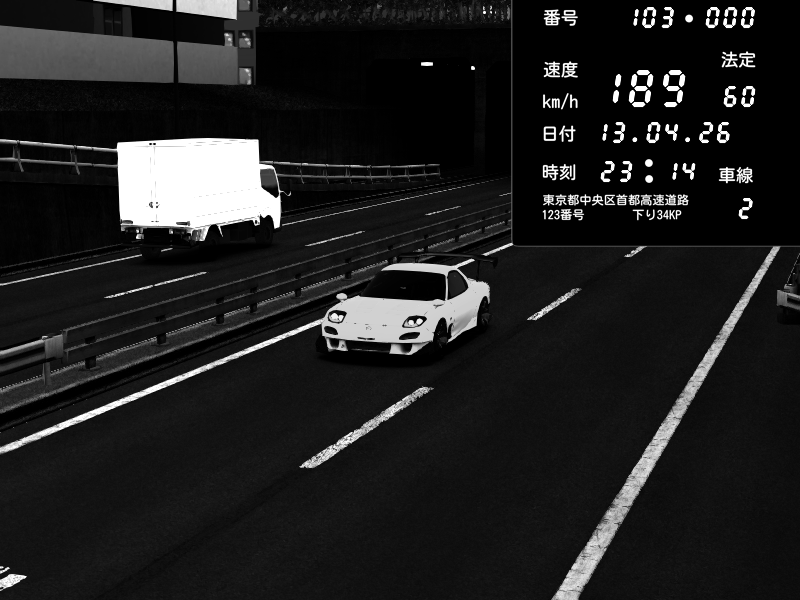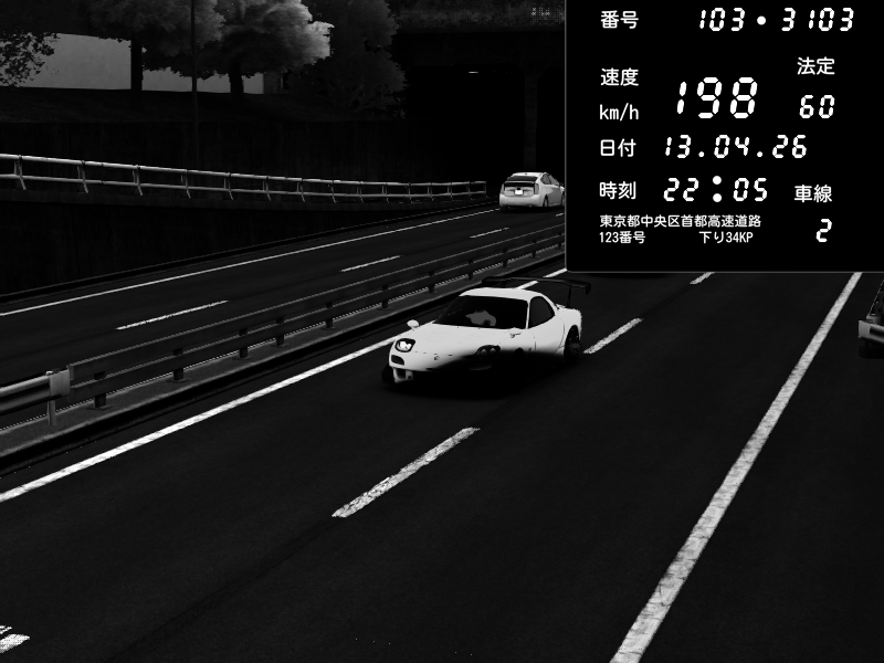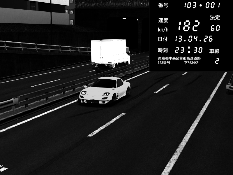| 2026/04/13 23:30 | C1内回り 銀座 | 182 / 60 km/h | Player | Mazda RX-7 FD3S RE Amemiya | CAPTURE |
