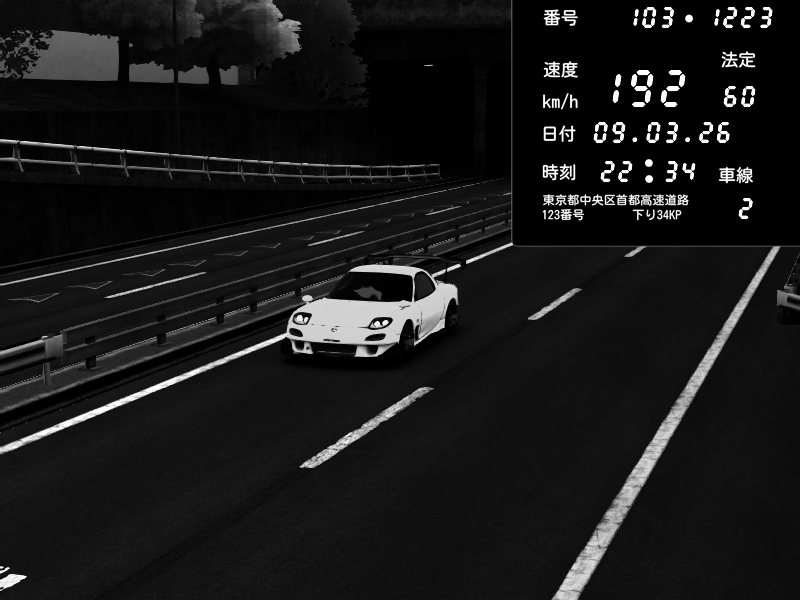 | 2026/03/09 00:42 | C1内回り 銀座 | 114 / 60 km/h | Player | Mazda RX-7 FD3S RE Amemiya | CAPTURE |