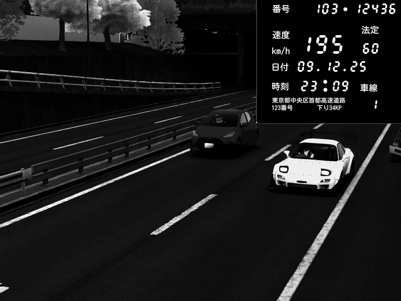 | 2025/12/10 20:35 | C1内回り 銀座 | 195 / 60 km/h | Player | Mazda RX-7 FD3S RE Amemiya | CAPTURE |