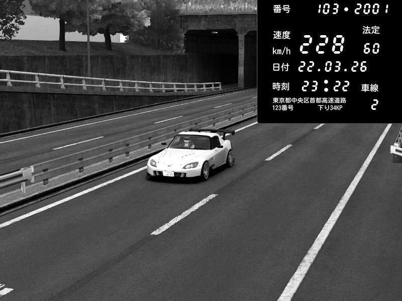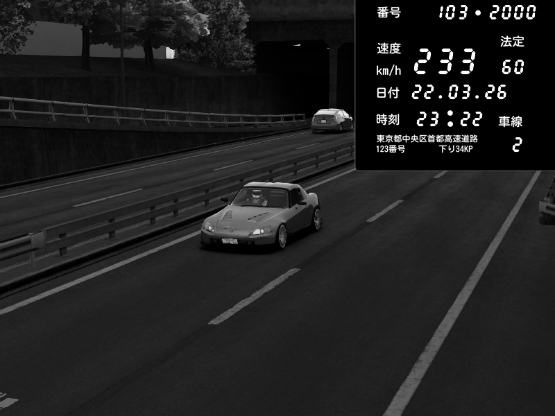 | 2026/03/22 23:22 | C1内回り 銀座 | 228 / 60 km/h | GereGere | Honda S2000 (AP2 - Legendary) | CAPTURE |
