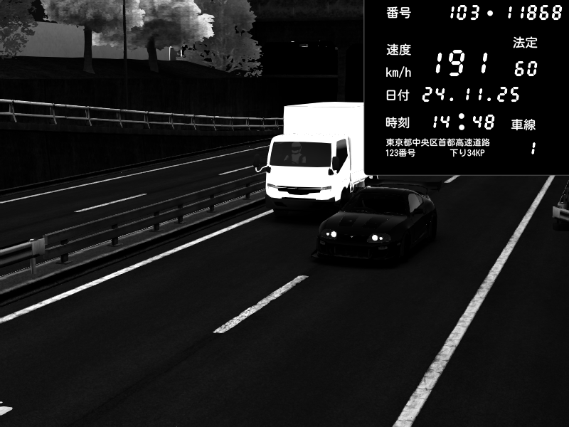 | 2025/11/24 01:03 | C1内回り 銀座 | 201 / 60 km/h | homura | Toyota Supra MKIV Time Attack | CAPTURE |