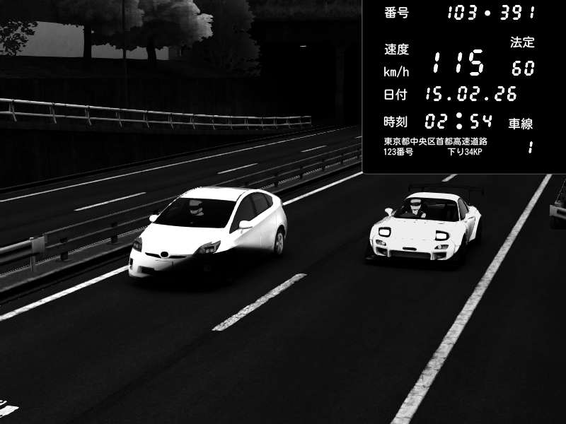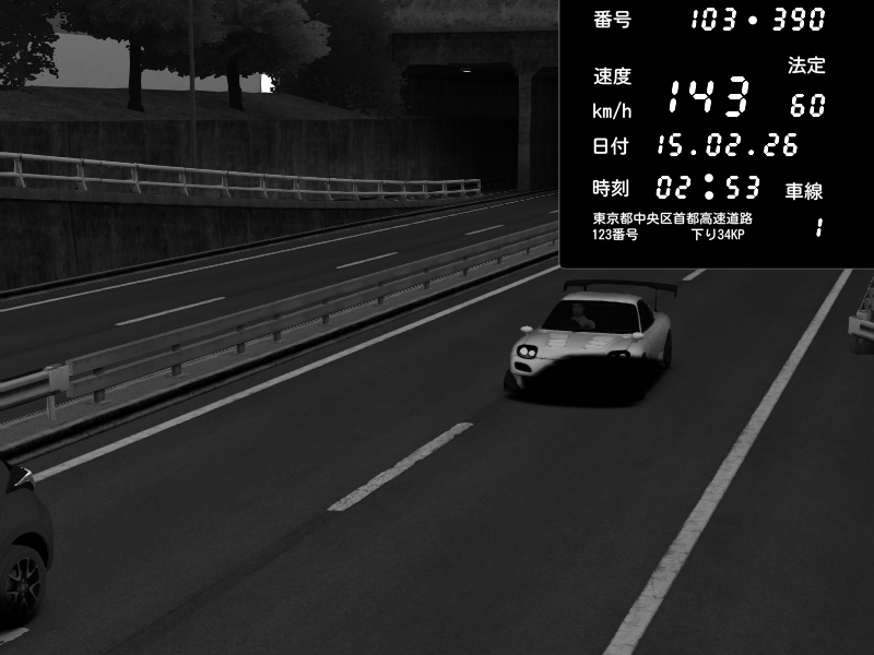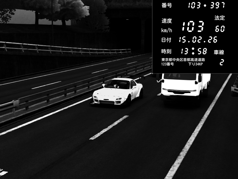 | 2026/02/15 02:54 | C1内回り 銀座 | 115 / 60 km/h | Player | Mazda RX-7 FD3S FEED Afflux GT3 | CAPTURE |