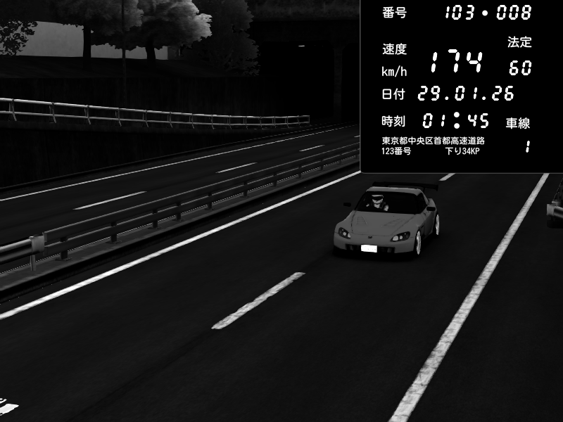 | 2026/01/29 01:45 | C1内回り 銀座 | 174 / 60 km/h | 木曜が一番疲れている | Honda S2000 (AP2 - Legendary) | CAPTURE |