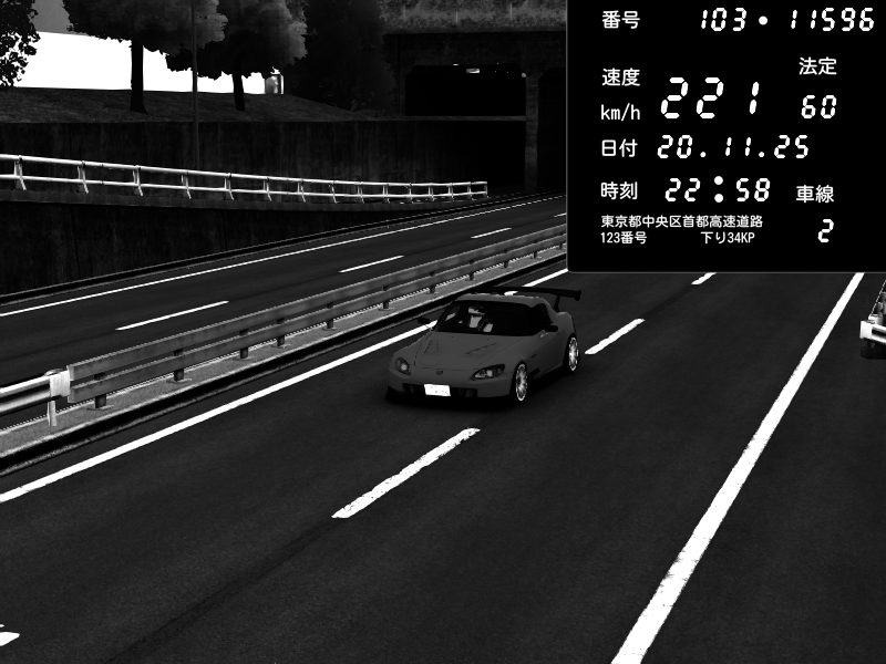 | 2025/11/20 21:41 | C1内回り 銀座 | 200 / 60 km/h | LEVEL3080 | Honda S2000 (AP2 - Legendary) | CAPTURE |