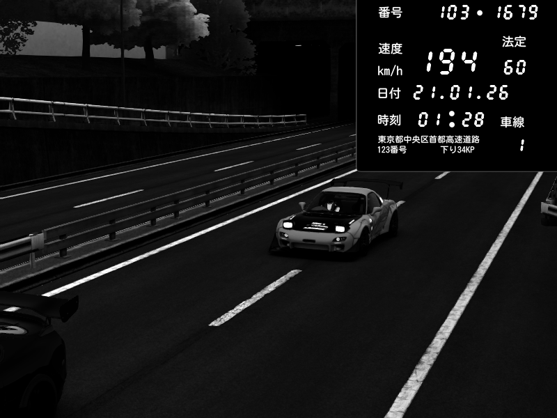 | 2026/01/21 23:31 | C1内回り 銀座 | 194 / 60 km/h | PSC | Mazda RX-7 FD3S RE Amemiya | CAPTURE |