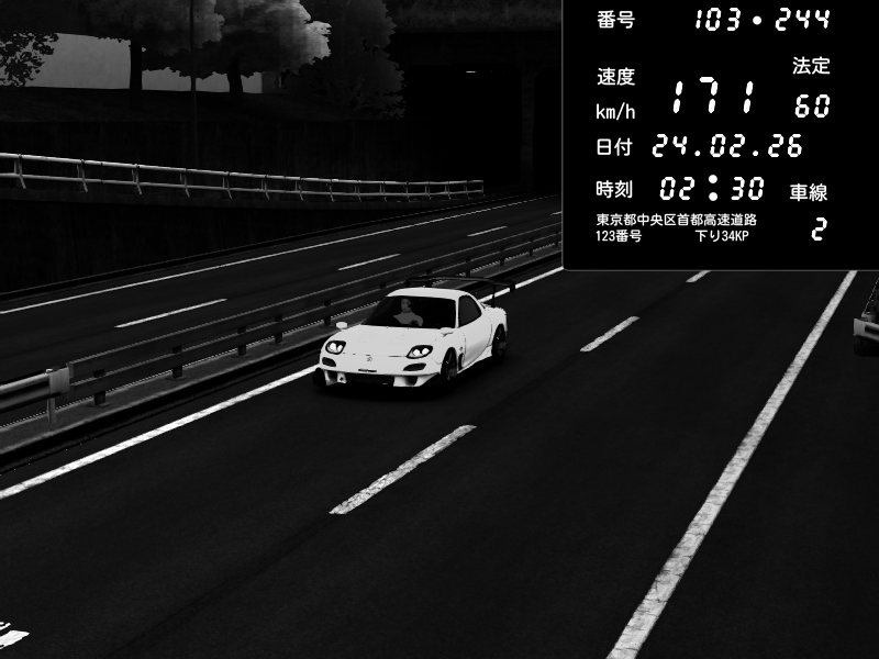 | 2026/02/24 02:05 | C1内回り 銀座 | 159 / 60 km/h | Defo | Mazda RX-7 FD3S RE Amemiya | CAPTURE |