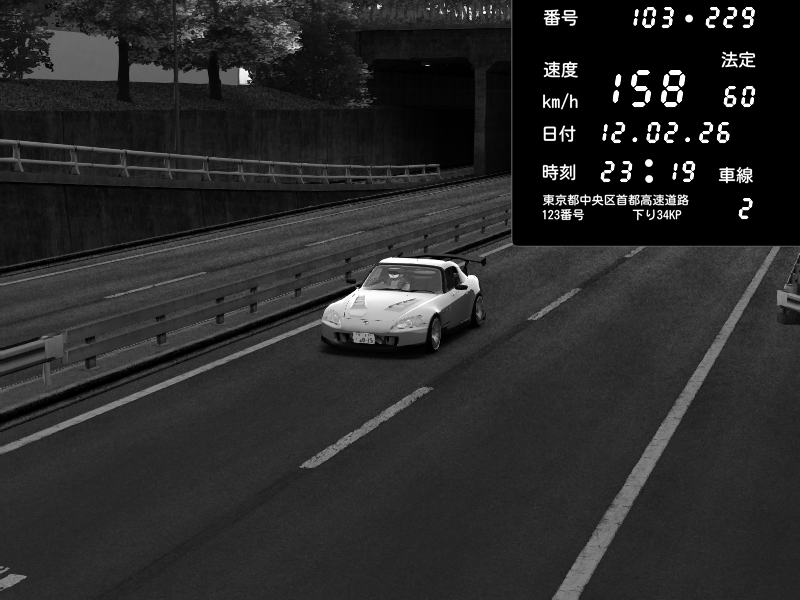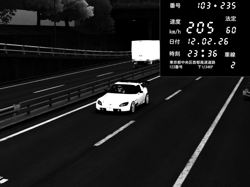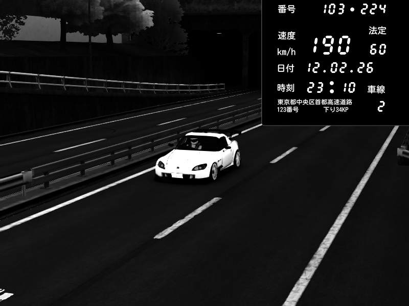 | 2026/02/12 23:53 | C1内回り 銀座 | 212 / 60 km/h | 木曜が一番疲れている | Honda S2000 (AP2 - Legendary) | CAPTURE |