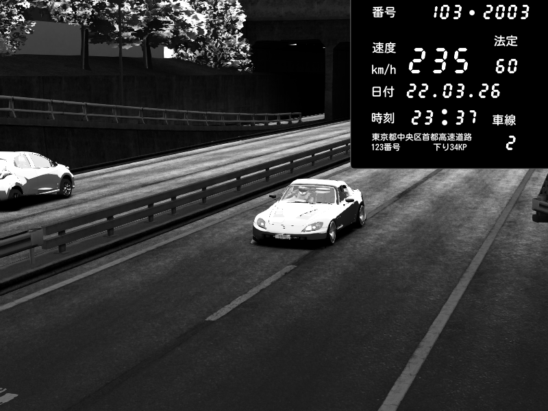 | 2026/03/22 23:22 | C1内回り 銀座 | 233 / 60 km/h | homura | Honda S2000 (AP2 - Legendary) | CAPTURE |
