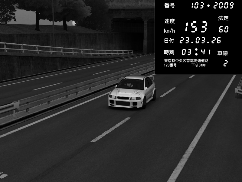 | 2026/03/22 23:22 | C1内回り 銀座 | 179 / 60 km/h | jvissingtornoe | Mitsubishi Lancer Evolution V Wangan Spec | CAPTURE |