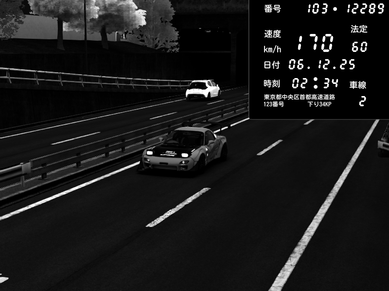 | 2025/12/04 20:01 | C1内回り 銀座 | 238 / 60 km/h | Lostctrl | Mazda RX-7 FD3S RE Amemiya | CAPTURE |