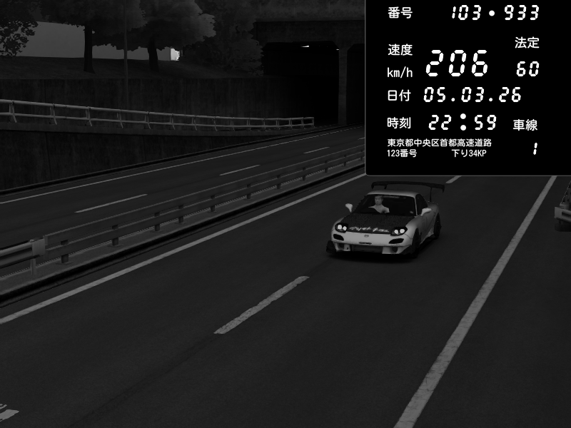 | 2026/03/05 22:59 | C1内回り 銀座 | 206 / 60 km/h | muchmore | Mazda RX-7 FD3S RE Amemiya | CAPTURE |