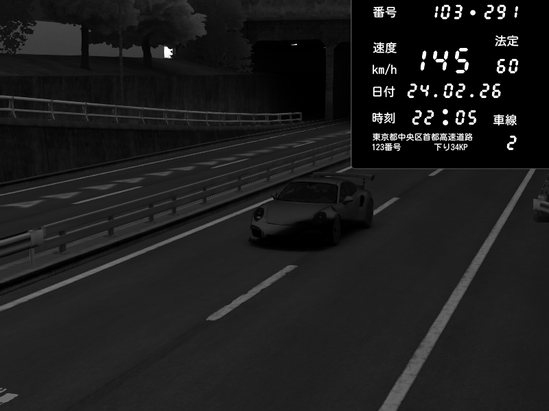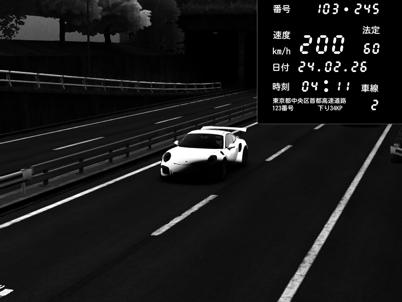 | 2026/02/24 01:55 | C1内回り 銀座 | 210 / 60 km/h | Shutoko Queen | Porsche 911 GT3 RS | CAPTURE |