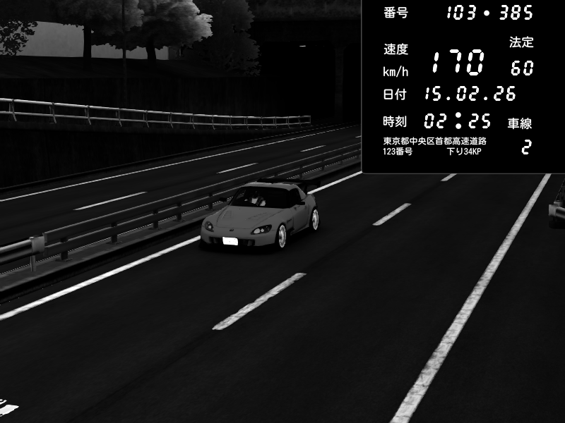 | 2026/02/15 02:25 | C1内回り 銀座 | 170 / 60 km/h | 木曜が一番疲れている | Honda S2000 (AP2 - Legendary) | CAPTURE |