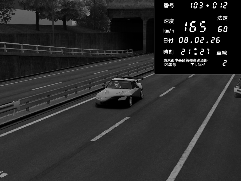 | 2026/02/08 21:47 | C1内回り 銀座 | 195 / 60 km/h | SOso | Honda S2000 (AP2 - Legendary) | CAPTURE |