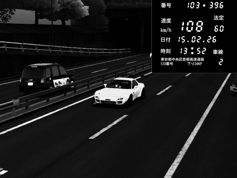 | 2026/02/15 13:52 | C1内回り 銀座 | 108 / 60 km/h | rmvs | Mazda RX-7 FD3S FEED Afflux GT3 | CAPTURE |