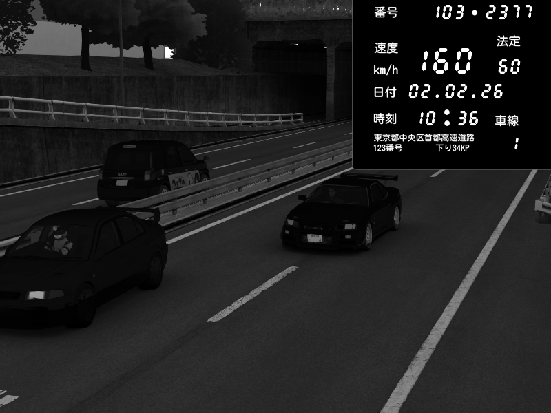| 2026/02/02 18:03 | C1内回り 銀座 | 213 / 60 km/h | G29(LUT)&32TV60Hz3画面老人晩酌中 | Honda S2000 Turbo GT1 Amuse (AP1) | CAPTURE |