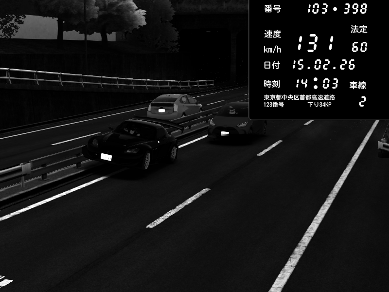 | 2026/02/14 23:47 | C1内回り 銀座 | 217 / 60 km/h | jack-o | Honda S2000 Turbo GT1 Amuse (AP1) | CAPTURE |