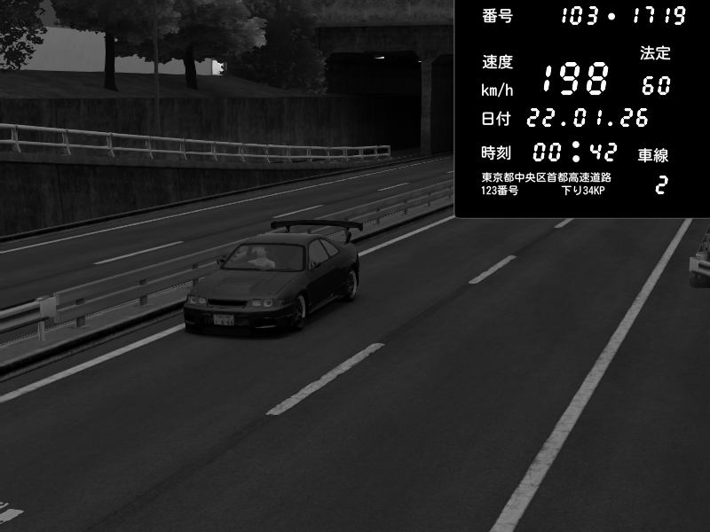 | 2026/01/22 00:42 | C1内回り 銀座 | 198 / 60 km/h | gc8 lover | Nissan Skyline GTR R33 (S3 - Wangan) | CAPTURE |