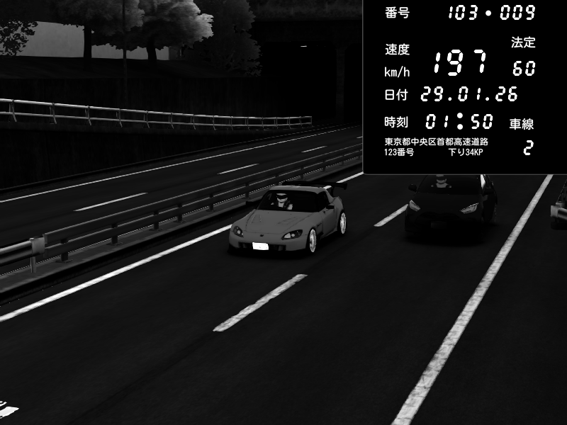 | 2026/01/29 01:12 | C1内回り 銀座 | 200 / 60 km/h | 木曜が一番疲れている | Honda S2000 (AP2 - Legendary) | CAPTURE |