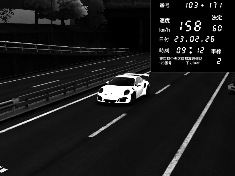 | 2026/02/23 09:12 | C1内回り 銀座 | 158 / 60 km/h | Kit | Porsche 911 GT3 RS | CAPTURE |
