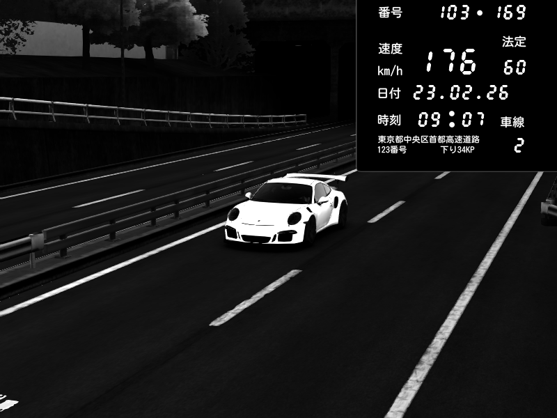 | 2026/02/22 22:46 | C1内回り 銀座 | 199 / 60 km/h | Player | Porsche 911 GT3 RS | CAPTURE |