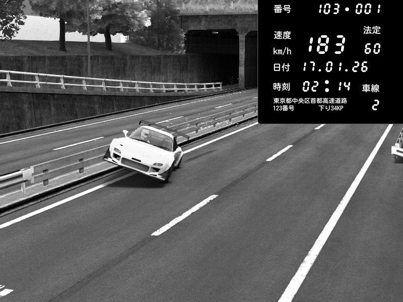| 2026/01/17 00:23 | C1内回り 銀座 | 114 / 60 km/h | z33 | Honda S2000 (AP2 - Legendary) | CAPTURE |