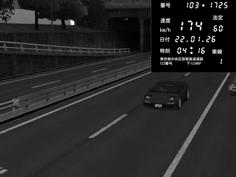 | 2026/01/22 04:16 | C1内回り 銀座 | 174 / 60 km/h | StarRingChild | Honda NSX [NA1] PVLSX | CAPTURE |