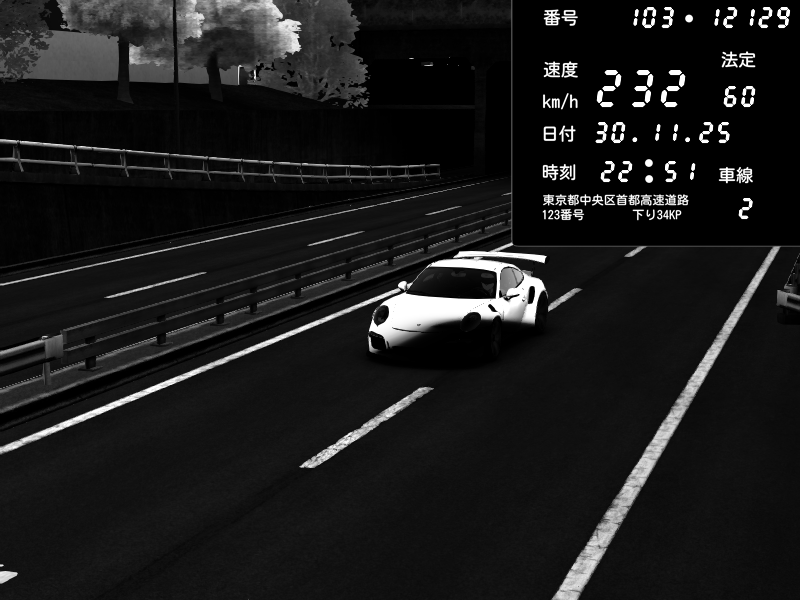 | 2025/11/30 22:51 | C1内回り 銀座 | 232 / 60 km/h | 🔰Shiero | Porsche 911 GT3 RS | CAPTURE |