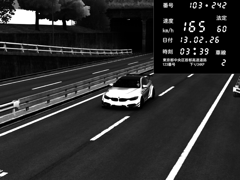 | 2026/02/13 03:39 | C1内回り 銀座 | 165 / 60 km/h | Herodudeboy | BMW M4 crash.Sp Varis Widebody | CAPTURE |