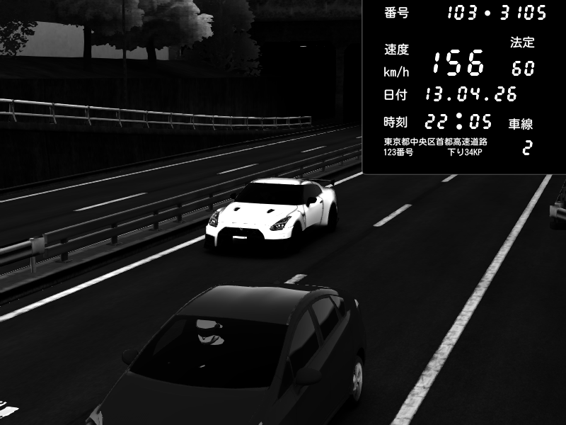 | 2026/04/13 21:23 | C1内回り 銀座 | 206 / 60 km/h | Maru | Nissan GT-R NISMO 2017 | CAPTURE |