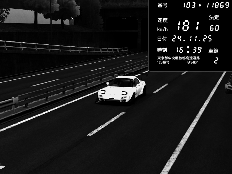 | 2025/11/23 22:54 | C1内回り 銀座 | 226 / 60 km/h | Yves_Jan | Mazda RX-7 FD3S RE Amemiya | CAPTURE |