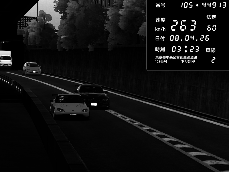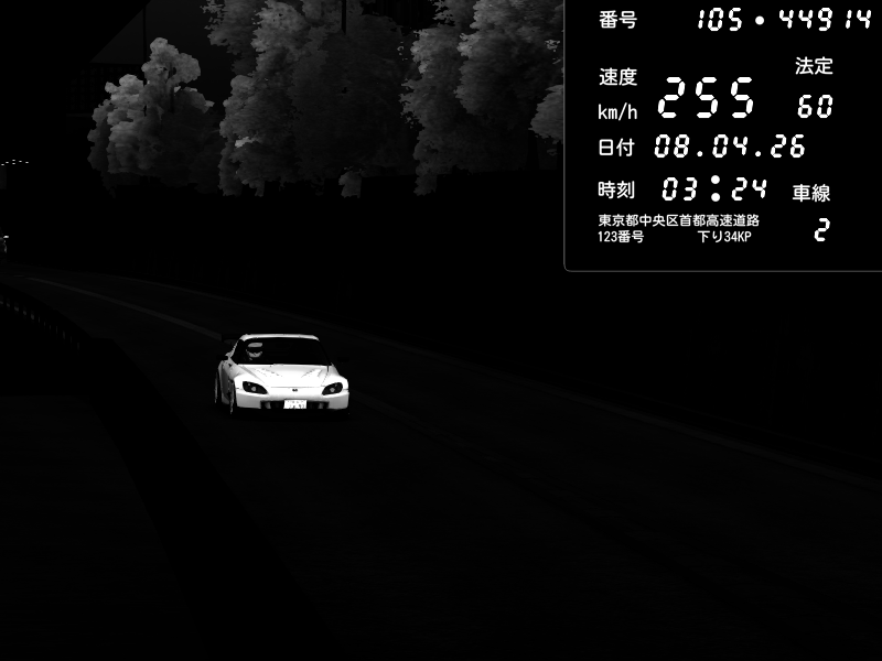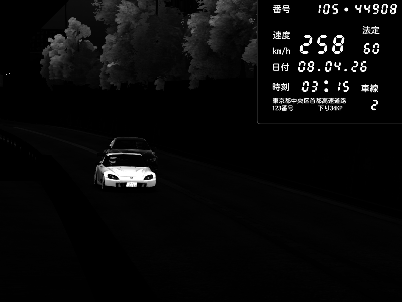 | 2026/04/08 02:01 | C1外回り 京橋 | 125 / 60 km/h | A1z | Honda S2000 (AP2 - Legendary) | CAPTURE |