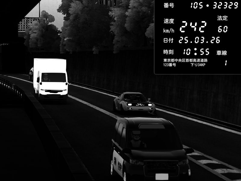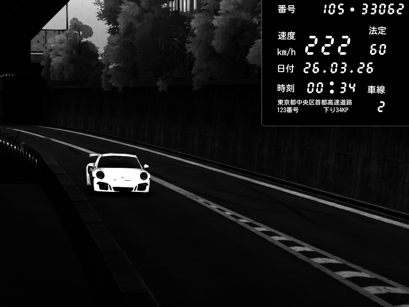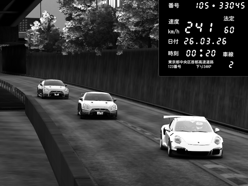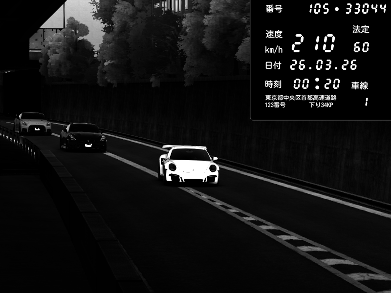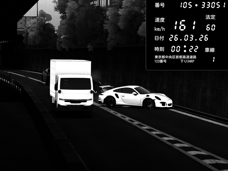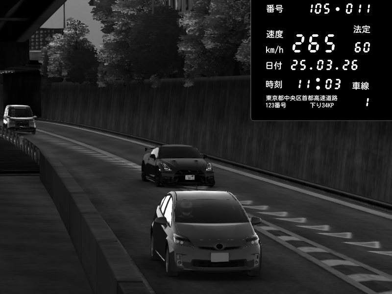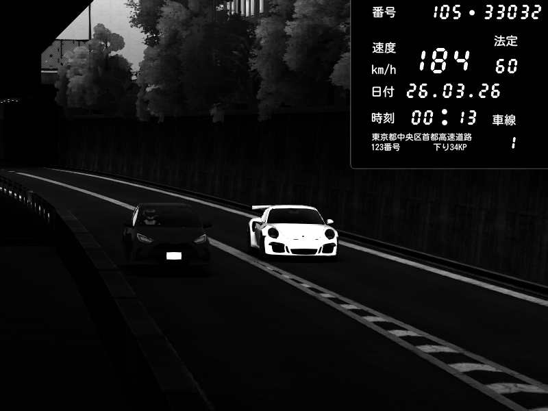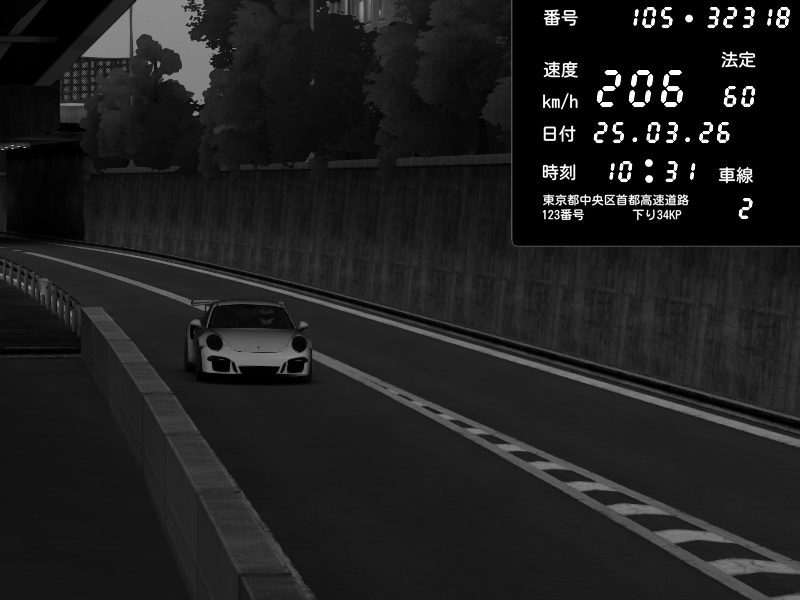 | 2026/03/25 10:31 | C1外回り 京橋 | 206 / 60 km/h | Player | Porsche 911 GT3 RS | CAPTURE |