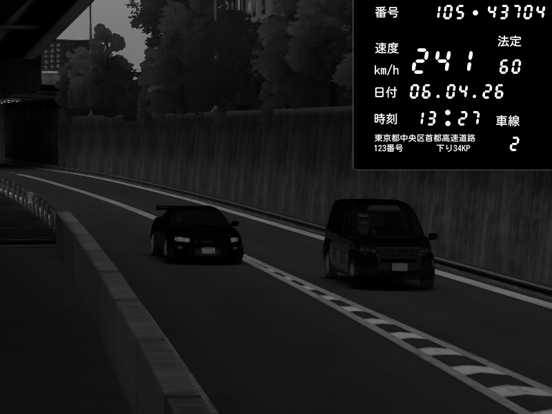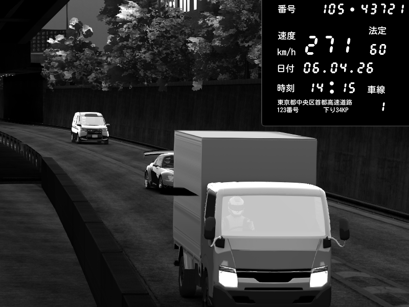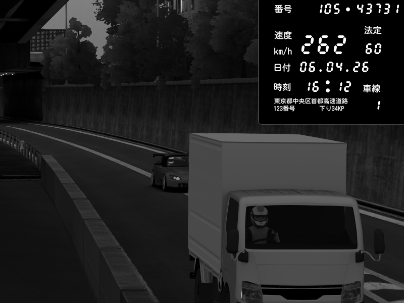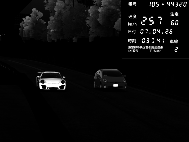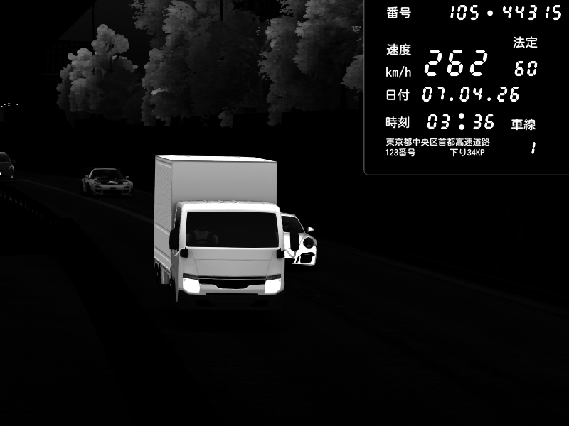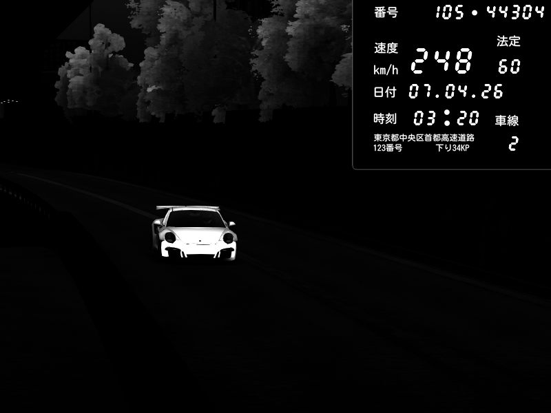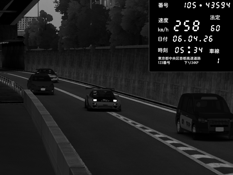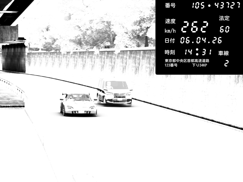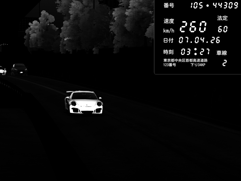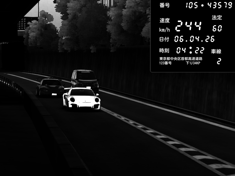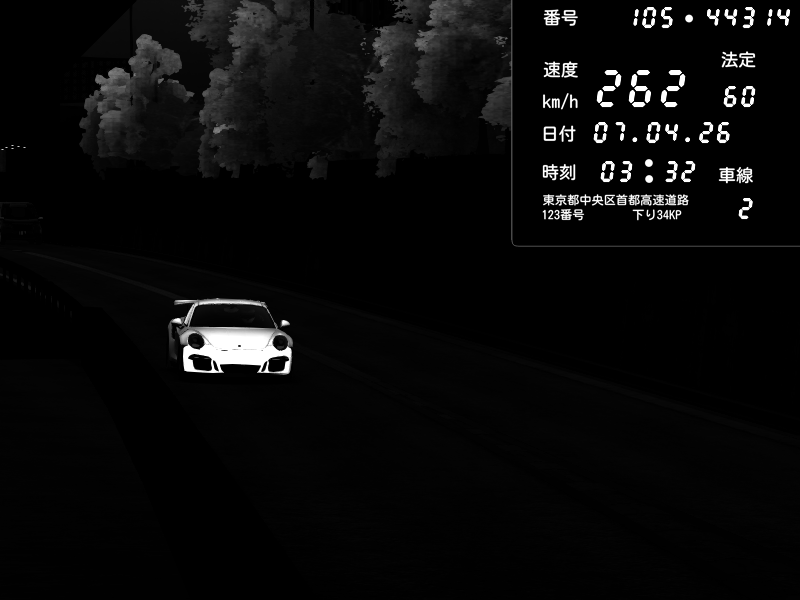| 2026/04/07 03:32 | C1外回り 京橋 | 262 / 60 km/h | MASUO-JP | Porsche 911 GT3 RS | CAPTURE |