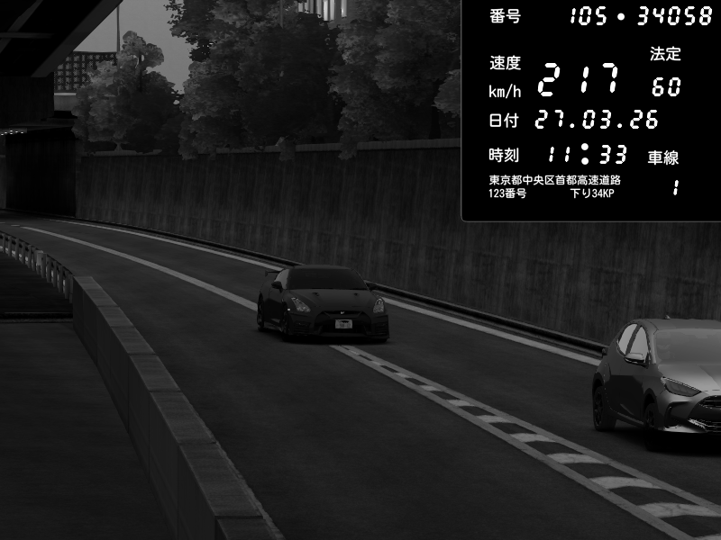 | 2026/03/27 11:33 | C1外回り 京橋 | 217 / 60 km/h | chocolate1830 | Nissan GT-R NISMO 2017 | CAPTURE |